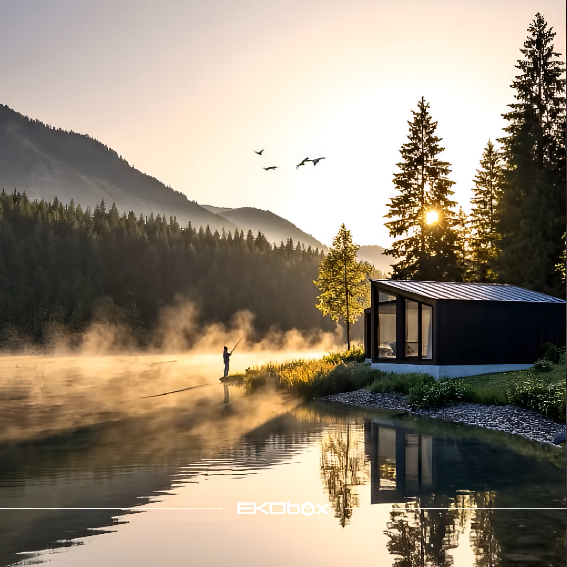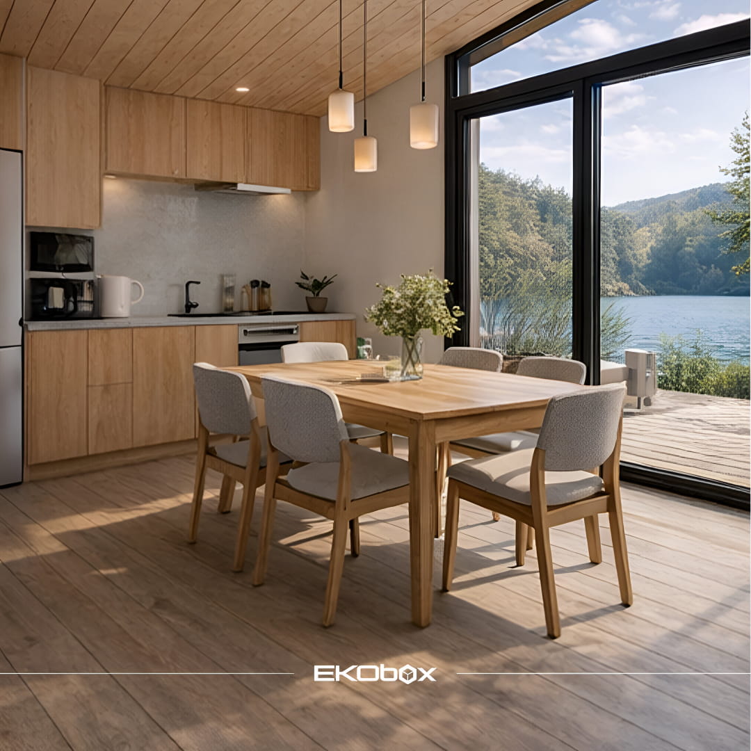 Predstavljajte si jutro ob mirnem jezeru, vonj gozda in kavo, ki jo pijete pred velikimi steklenimi površinami, ki brišejo mejo med notranjostjo in naravo. Prav takšno doživetje ponuja vikend hiša Fourb Home – spoj sodobnega dizajna, funkcionalnosti in popolne harmonije z okoljem.